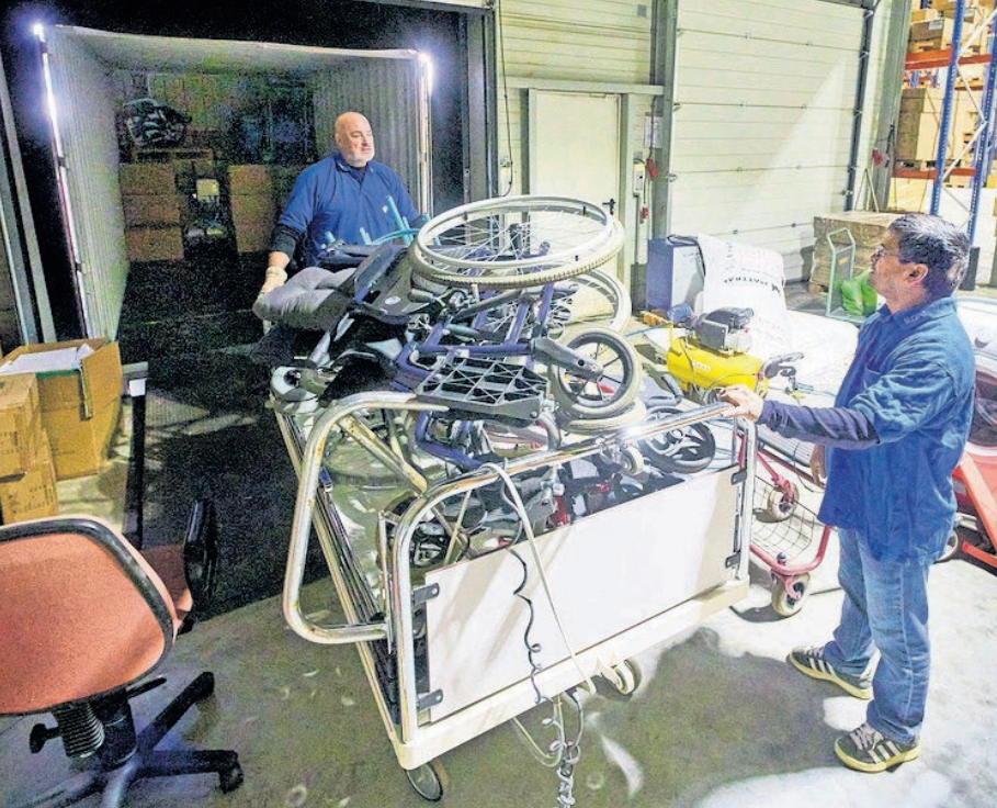 geboorteland. Een container vol hulpmiddelen is onderweg naar Bangladesh. „Als je het